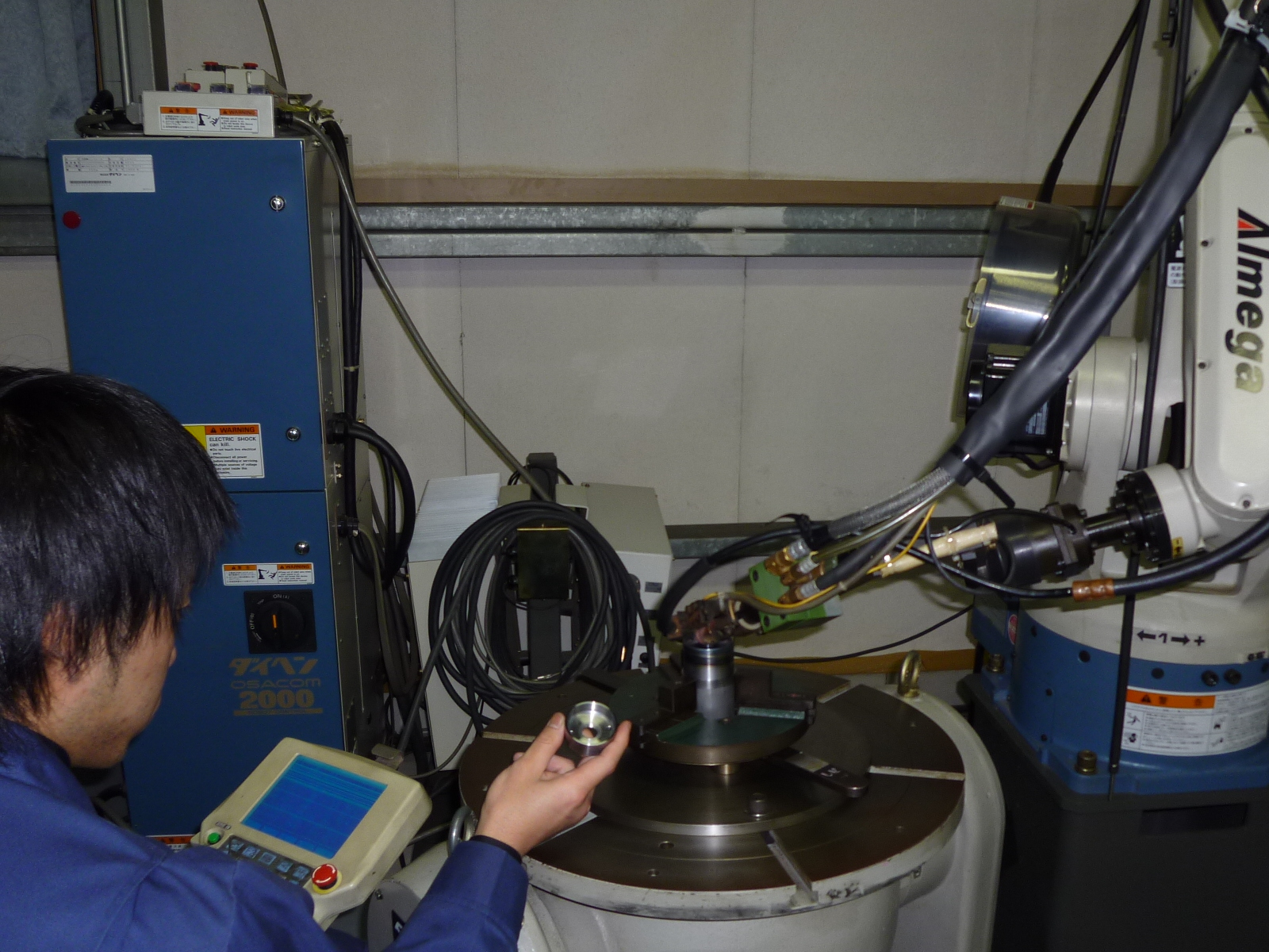 2.ロアキャップを溶接ロボットで溶接します。
