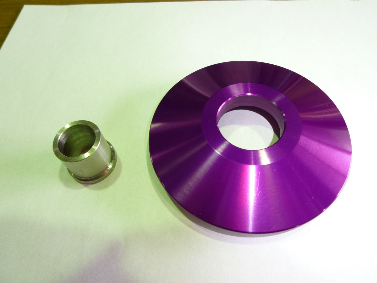 インナーカートリッジの上側のシャフトがM14(ノーマルはM12)だったので、ノーマルベアリング採用の為、ベアリング穴径をΦ15にボスに改造してもらいました。